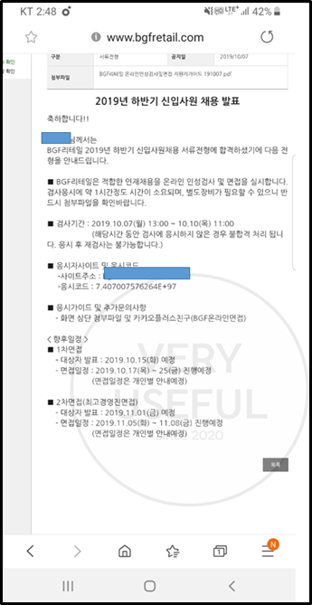 지금부터 직접 경험한 '2019년 하반기 BGF 리테일 서류 합격 후기'에 대해 알려드리겠습니다.